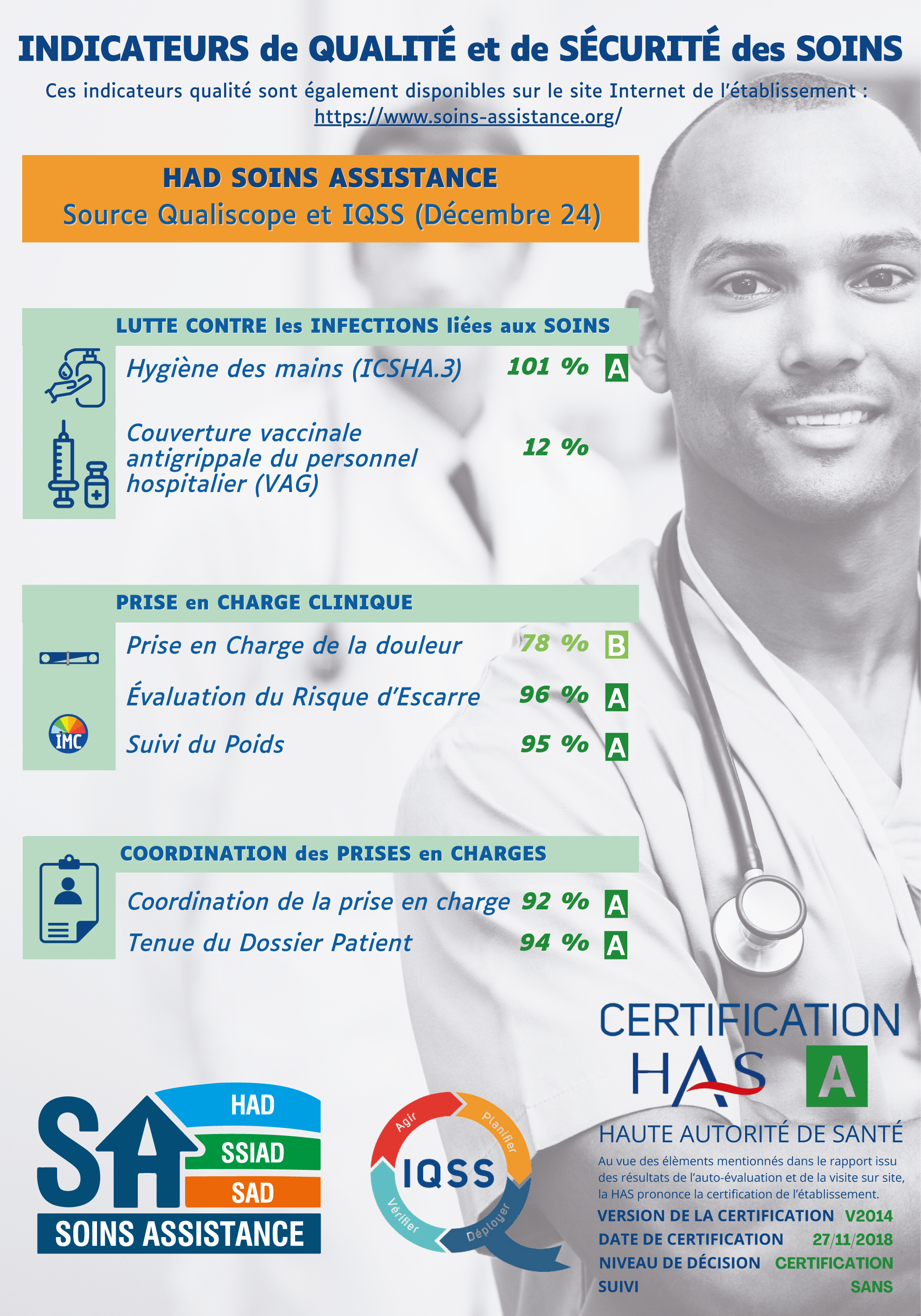Cette démarche qualité est basée sur la prévention du risque et l’évaluation des pratiques professionnelles, selon les principes de la Certification AFNOR ISO 9001 dont les méthodes et outils qualité sont appliqués à l’ensemble des secteurs d’activité de l’établissement : Revue de Direction / Programme d’Amélioration de la Qualité et de la Sécurité des Soins (PAQSS), système documentaire, suivi d’indicateurs et évaluation des pratiques professionnelles.